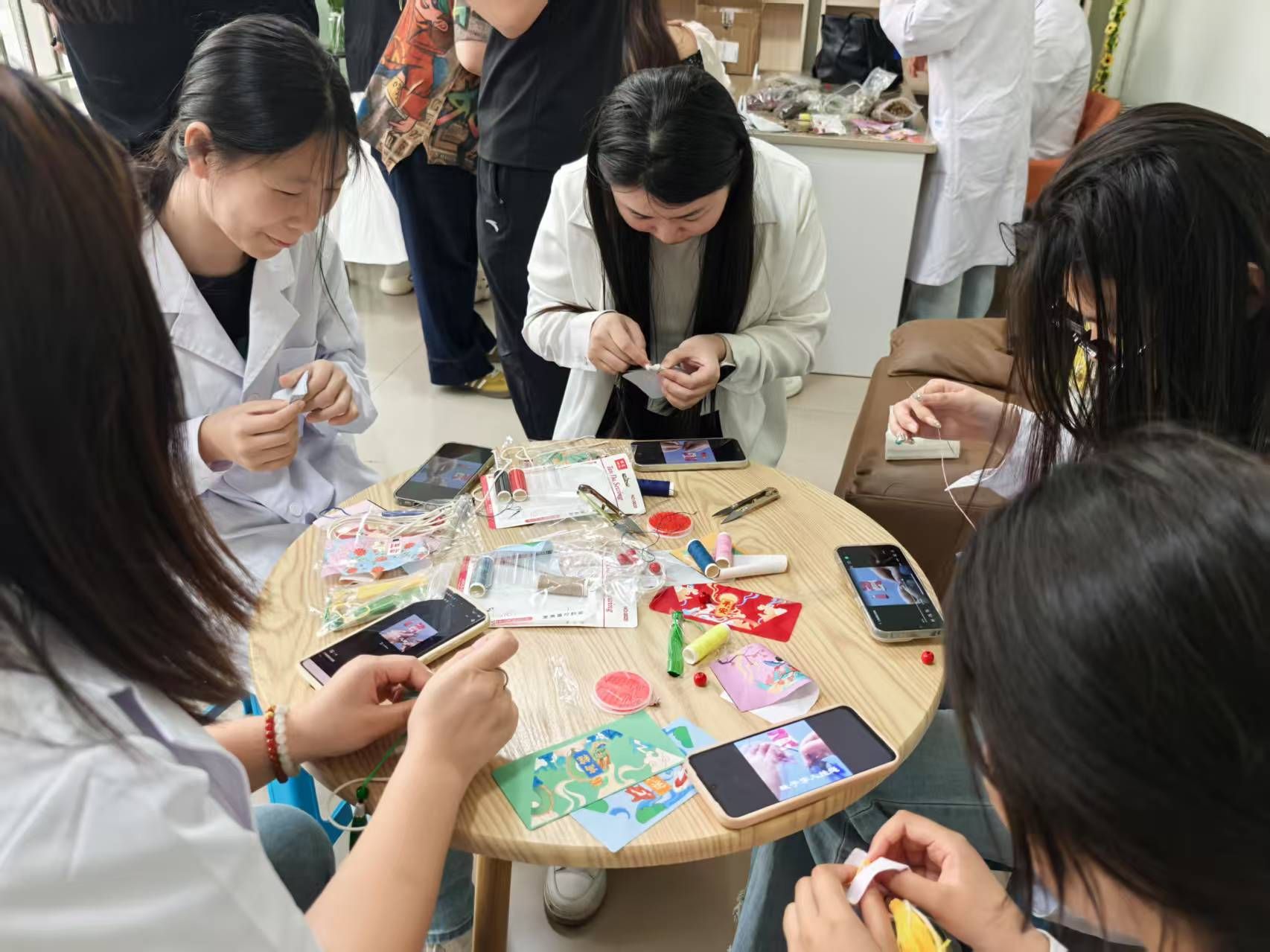 手作疗心,香囊互赠递真情。讲座结束后,同学们在心理工作站亲手制作中药香囊。大家根据所学知识,挑选具有安神、醒脑功效的药材配伍填充,在一针一线中体验手作的专注与宁静。香囊制成后,同学们在卡片上写下暖心祝福,互赠同窗,传递关怀与鼓励。小小的香囊不仅承载着中药的芬芳,更凝聚了同窗间的深情厚谊,成为心理健康教育的生动载体。