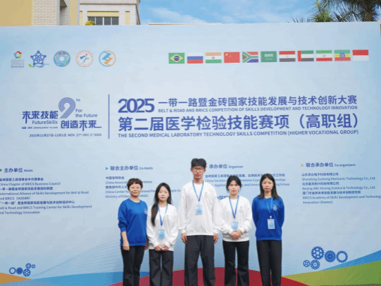 近日,2025一带一路暨金砖国家技能发展与技术创新大赛之第二届医学检验技能赛项(高职组)决赛正式落下帷幕。本次大赛由金砖国家工商理事会中方理事会、一带一路暨金砖国家技能发展国际联盟等单位联合主办,是医学检验领域面向高职群体的全国性高水平赛事。我院选派由3名学生组成的代表队参赛,历经前期校级选拔与层层打磨,最终在60所高职医学院校队伍中突围,荣获全国三等奖。
