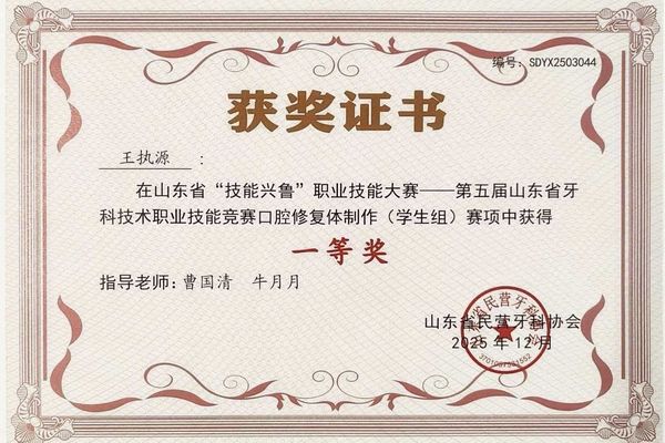 此次竞赛共有教师组和学生组两个级别,分修复体数字化设计和修复体打磨抛光两个阶段进行。我院赛队为学生组。经过激烈角逐,tyc7111cc太阳成集团三名参赛选手中王执源同学获一等奖第一名,王硕同学获二等奖第一名,曲峰同学获优秀奖。