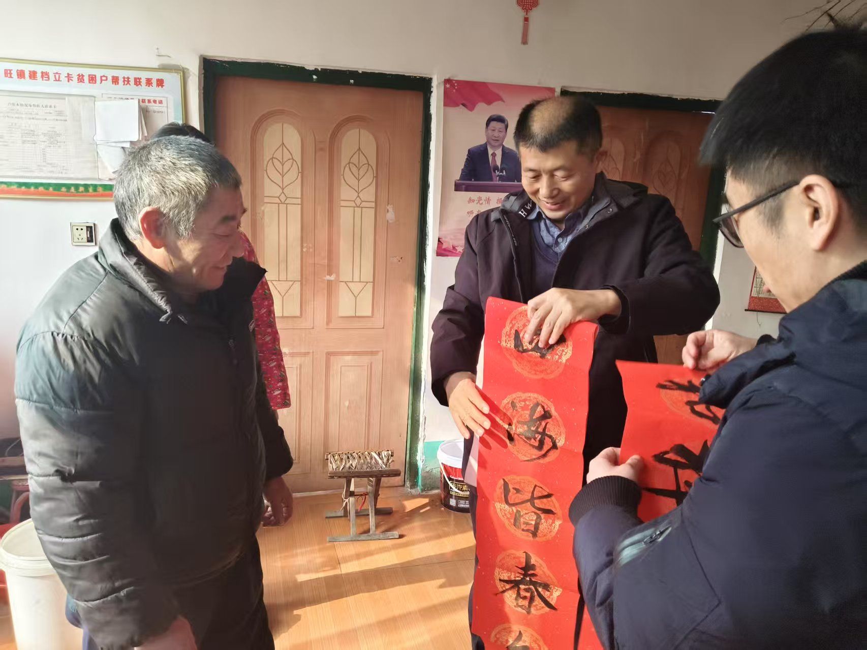 本次家访聚焦建档立卡家庭学生的实际需求,家访小组提前梳理学生档案、精准规划行程,不仅为学生家庭送去了米面粮油等生活物资,更送上了老师们亲笔书写的新春春联,让关怀与年味一同抵达。