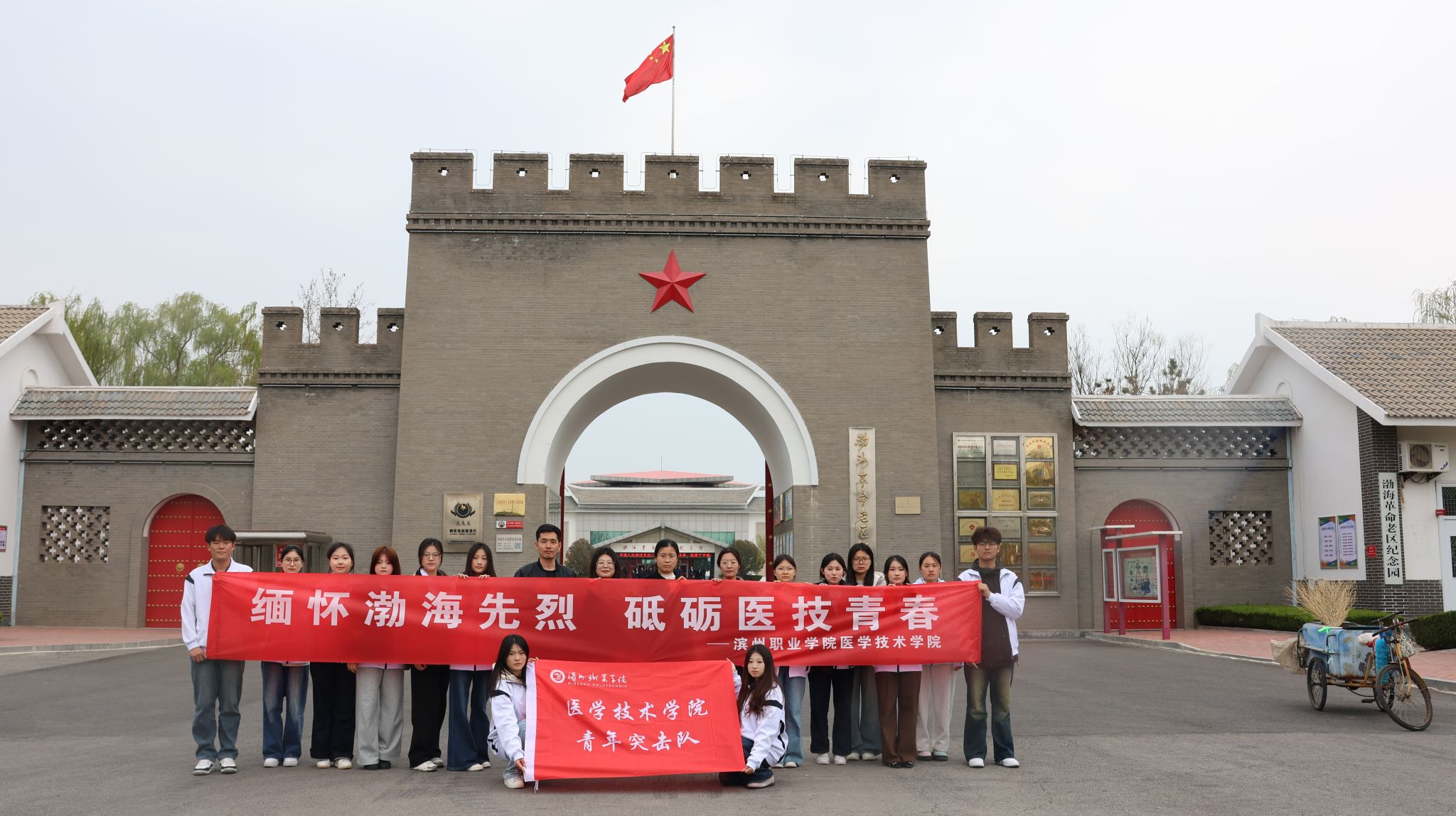 把红色资源变成党员教育的“活教材”,是tyc7111cc太阳成集团一直在做的事。依托渤海革命老区等本土红色资源优势,学院近年来持续探索“情景式党课”“沉浸式研学”等多元形式,让党性教育从课堂走到现场,从“听人说”变成“自己悟”。学院始终坚持将红色文化融入学生党建、专业教育和日常管理全过程,着力打造“行走的思政课”“医心向党”等特色品牌活动,引导青年学子在红色浸润中筑牢信仰之基、补足精神之钙。